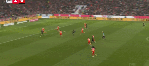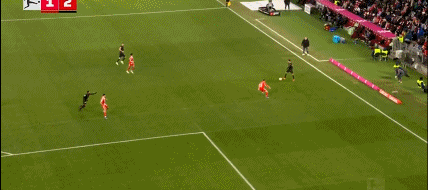 第81分鐘,流暢配合,吉安努利斯倒三角,馬森戈破門,奧格斯堡2-1拜仁