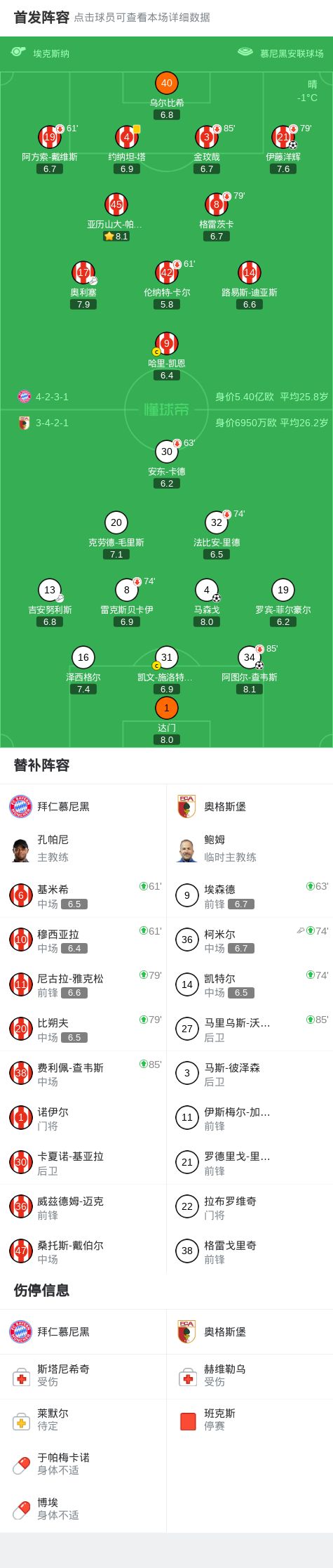 - 拜仁vs奧格斯堡:凱恩領(lǐng)銜,烏爾比希、阿方索、伊藤洋輝出戰(zhàn)