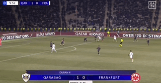 北京時(shí)間1月22日歐冠聯(lián)賽階段第7輪,卡拉巴赫主場對(duì)陣法蘭克福。上半場,卡米洛-杜蘭先拔頭籌,隨后烏尊破門扳平比分。下半場,沙伊比點(diǎn)射建功,卡米洛-杜蘭閃電扳平梅開二度。補(bǔ)時(shí)階段,穆斯塔法扎達(dá)讀秒破門完成絕殺。最終法蘭克福2-3遭卡拉巴赫讀秒絕殺被提前淘汰。