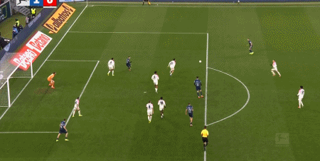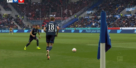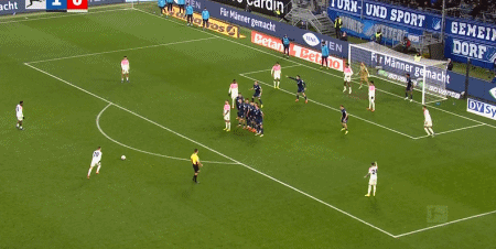 第9分鐘,布格爾任意球直接破門,霍芬海姆1-0勒沃庫森