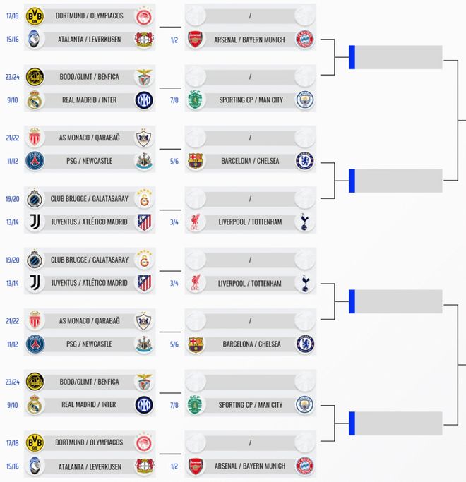 在附加賽中獲勝的八支俱樂部將晉級16強,與直通的8支隊一起,組成本賽季歐冠16強的最終陣容,16強抽簽將于2026年2月27日舉行。