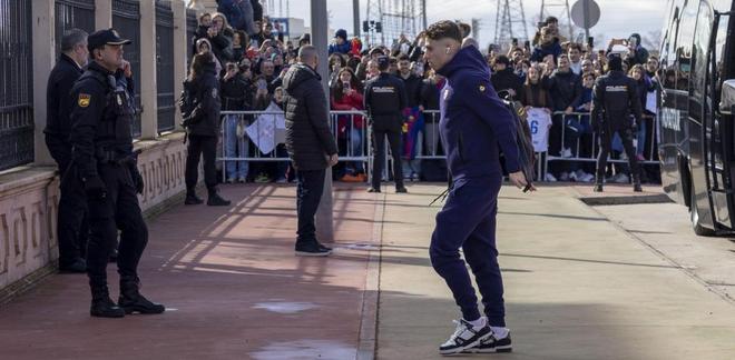根據(jù)《世界體育報》的報道,當(dāng)?shù)貢r間2月3日12點40分,巴薩搭乘包機(jī)抵達(dá)曼查機(jī)場,隨后入駐阿爾瓦塞特的博什艾麗西亞酒店,球隊抵達(dá)時當(dāng)?shù)貧鉁丶s8攝氏度,伴有微弱陽光,數(shù)百名球迷熱情接機(jī)。